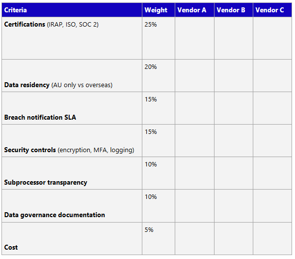 Must-haves: Data sovereignty, no overseas access to patient data, and a breach notification SLA under two hours.