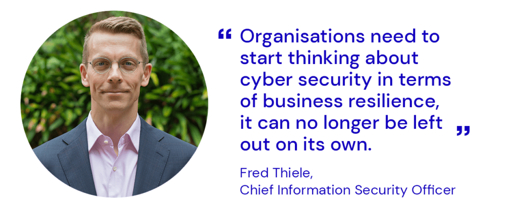 This misstep can cause major disruption during a cyber security event including serious reputational damage. Organisations need to start thinking about cyber security in terms of business resilience, it can no longer be left out on its own.